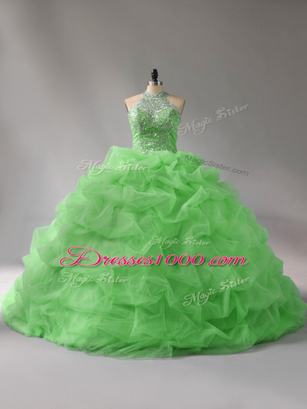 Sweet 15 Quinceanera Dress Organza Court Train Sleeveless Beading and Pick Ups