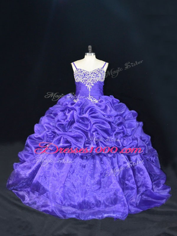 Lovely Purple Lace Up Straps Beading and Pick Ups Sweet 16 Dresses Organza Sleeveless Brush Train