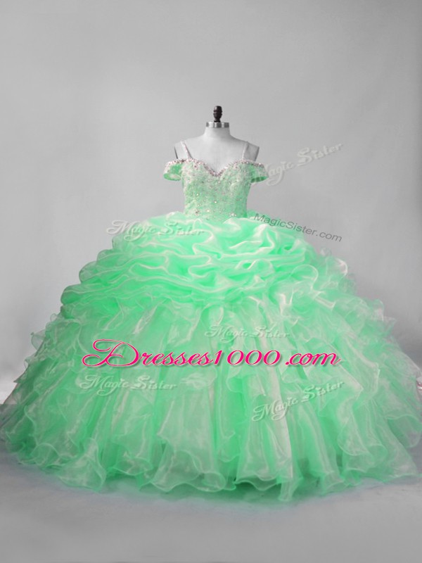 Nice Beading and Pick Ups Ball Gown Prom Dress Apple Green Lace Up Sleeveless