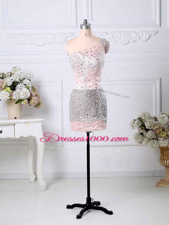 Pretty One Shoulder Sleeveless Side Zipper Pink Satin