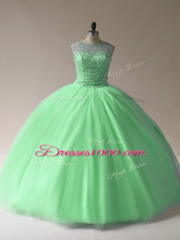 Latest Tulle Scoop Sleeveless Lace Up Beading Vestidos de Quinceanera in
