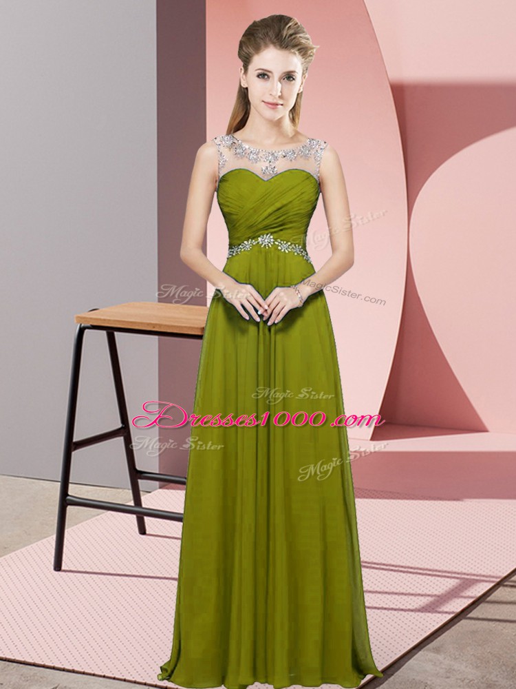 New Arrival Olive Green Prom and Party and Military Ball with Beading Scoop Sleeveless Backless