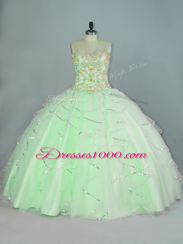 Apple Green Lace Up Quinceanera Gowns Beading and Ruffles Sleeveless Floor Length