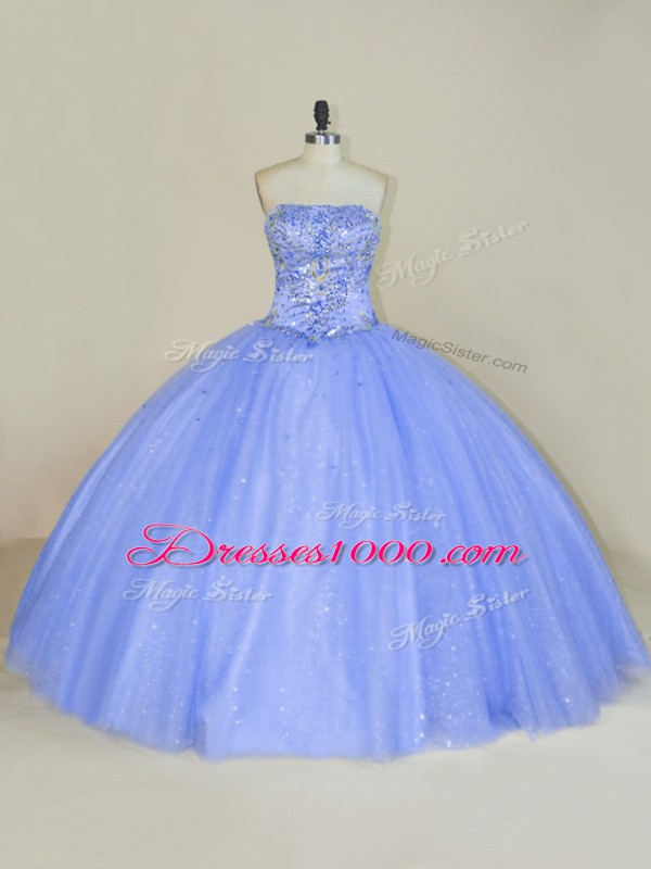 Lavender Tulle Lace Up Strapless Sleeveless Floor Length Sweet 16 Dress Beading and Sequins