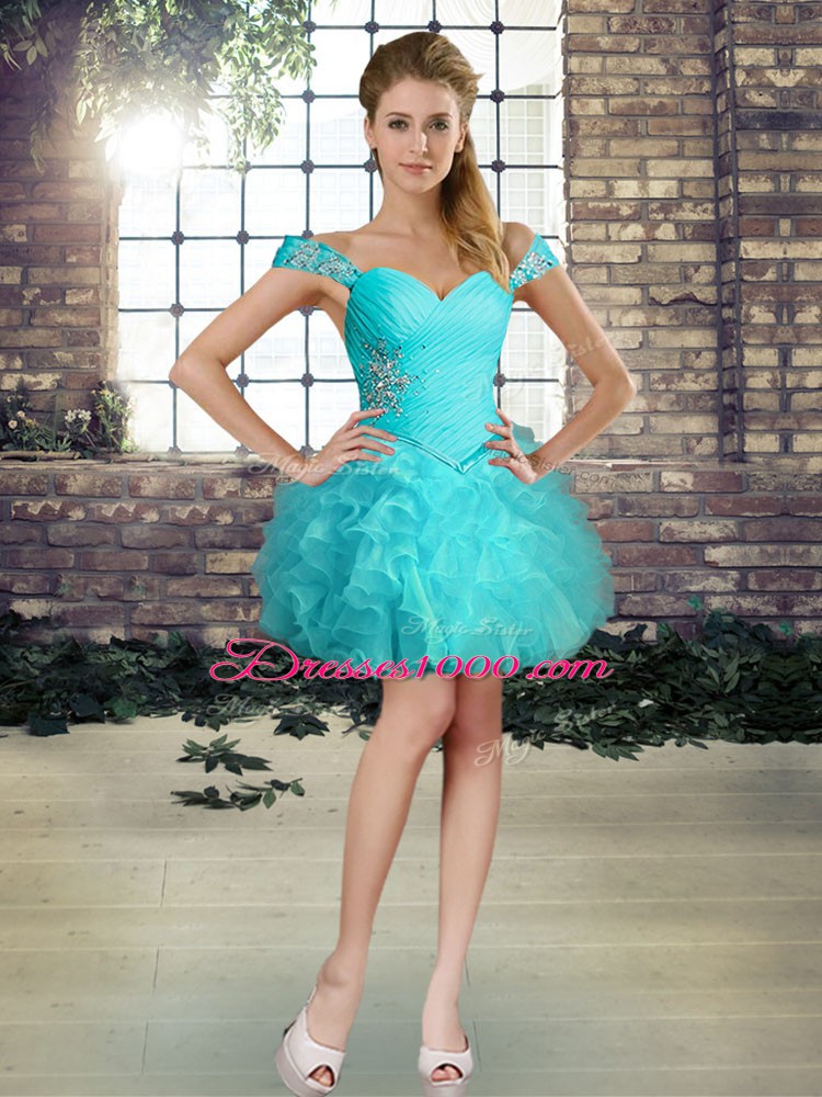 Aqua Blue Sleeveless Organza Lace Up Prom Party Dress for Prom and Party