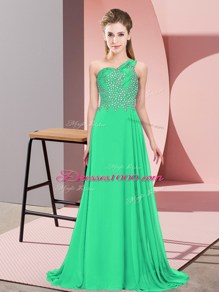 High Class Chiffon One Shoulder Sleeveless Side Zipper Beading Evening Dress in Turquoise