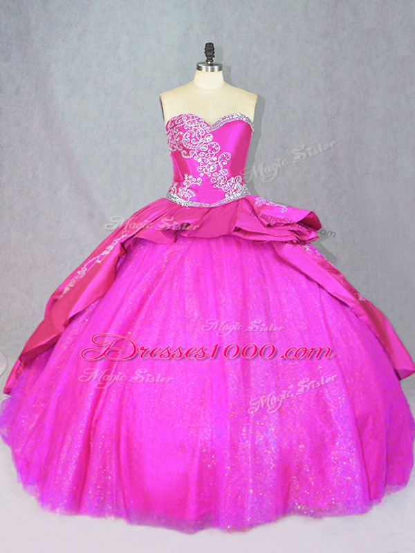 Stunning Satin and Tulle Sleeveless Sweet 16 Dress Court Train and Beading and Embroidery