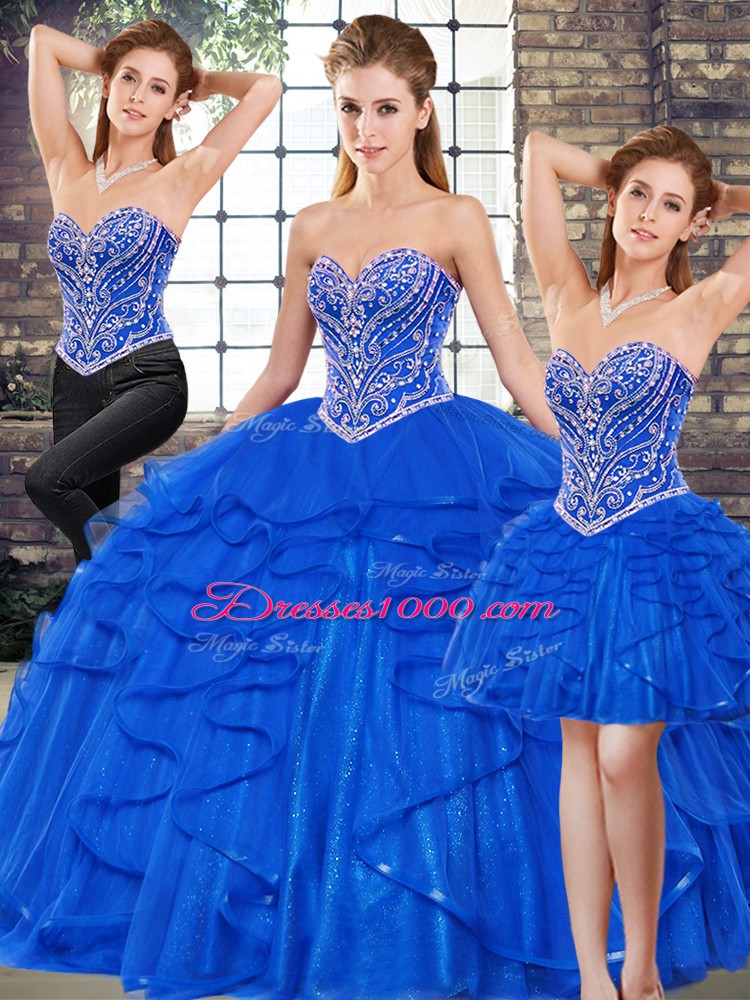 Floor Length Three Pieces Sleeveless Royal Blue 15 Quinceanera Dress Lace Up