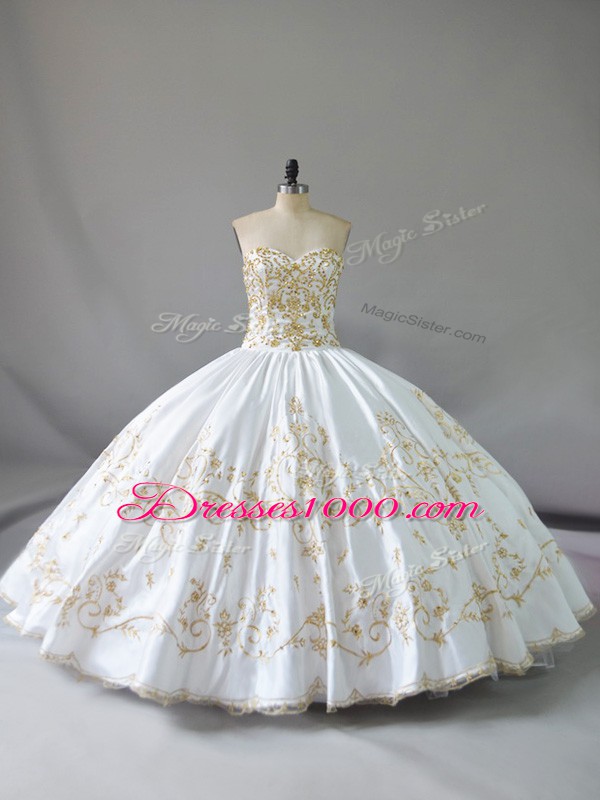Elegant Floor Length Lace Up Ball Gown Prom Dress White for Sweet 16 and Quinceanera with Embroidery