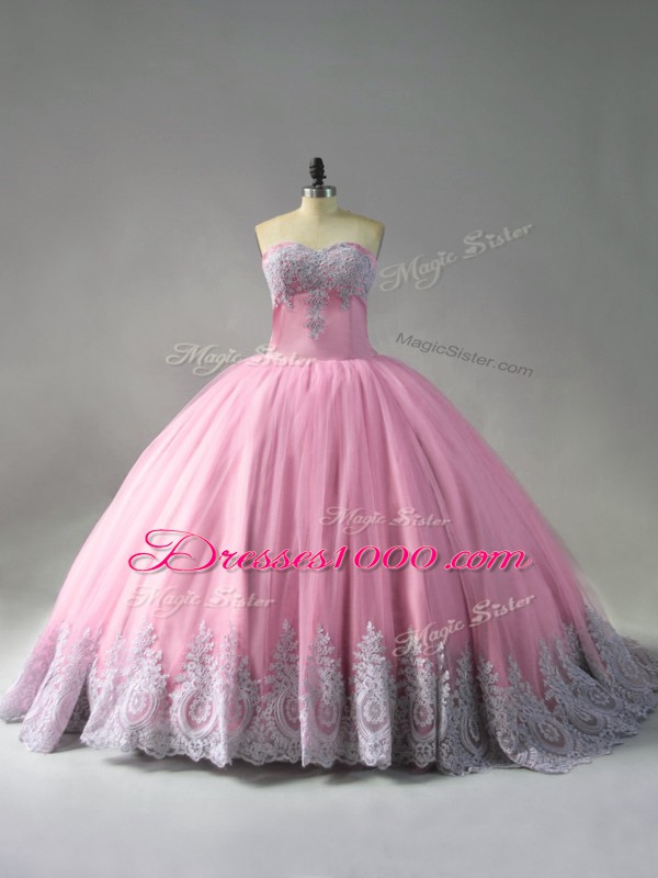 Pink Sweetheart Neckline Beading and Appliques Sweet 16 Quinceanera Dress Sleeveless Lace Up