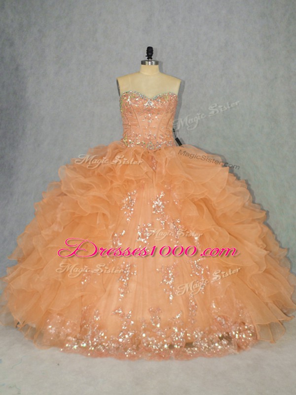 Modest Beading and Ruffles Sweet 16 Quinceanera Dress Orange Lace Up Sleeveless