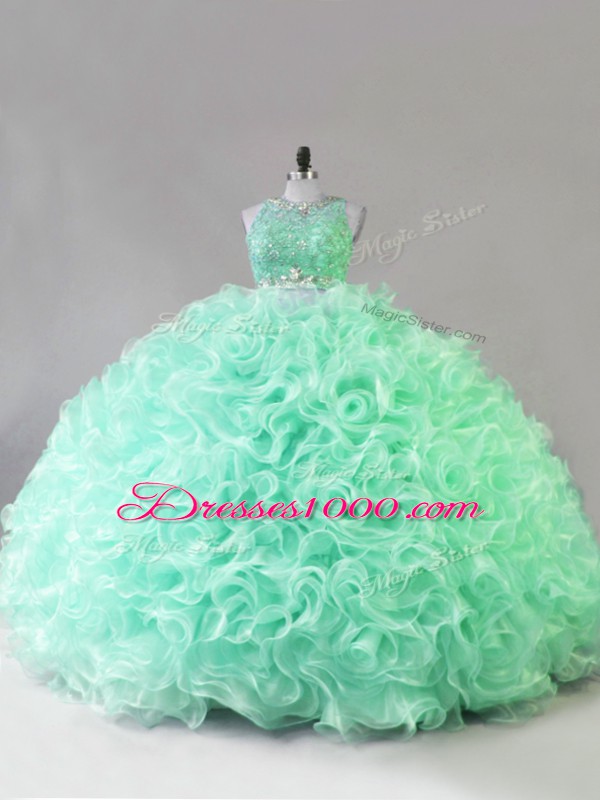 Suitable Beading and Ruffles Ball Gown Prom Dress Apple Green Zipper Sleeveless