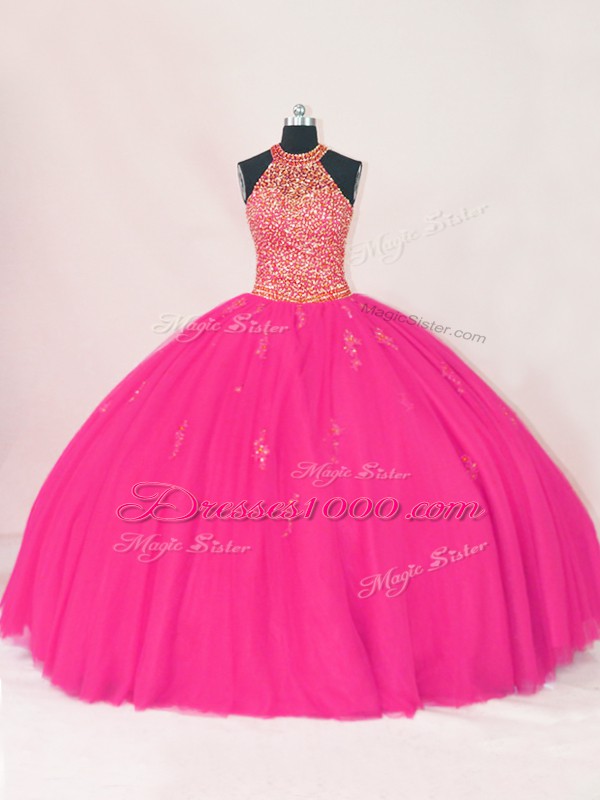 Exquisite Floor Length Ball Gowns Sleeveless Hot Pink Quinceanera Gowns Lace Up