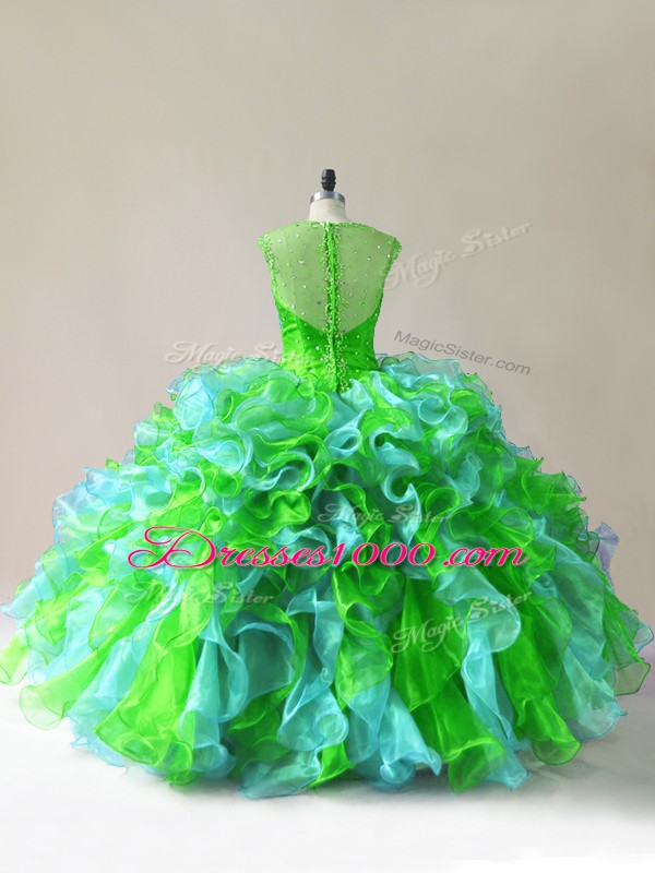 Floor Length Zipper 15 Quinceanera Dress Multi-color for Sweet 16 and Quinceanera with Beading and Ruffles