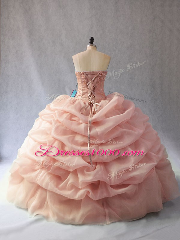Superior Sweetheart Sleeveless Organza Ball Gown Prom Dress Beading and Pick Ups Lace Up