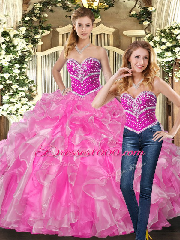 Popular Lace Up Sweet 16 Quinceanera Dress Rose Pink for Sweet 16 and Quinceanera with Beading and Ruffles