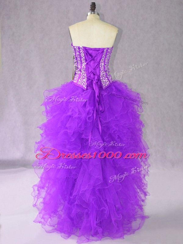 Affordable Purple Lace Up Junior Homecoming Dress Beading and Ruffles Sleeveless High Low