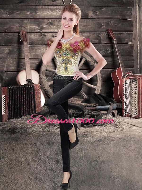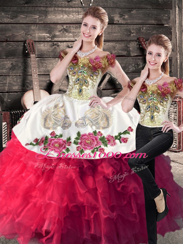 Fitting Off The Shoulder Sleeveless Quinceanera Dress Floor Length Embroidery Hot Pink Satin and Organza