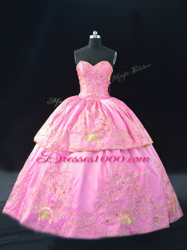 Customized Rose Pink Lace Up Quinceanera Dresses Embroidery Sleeveless Floor Length