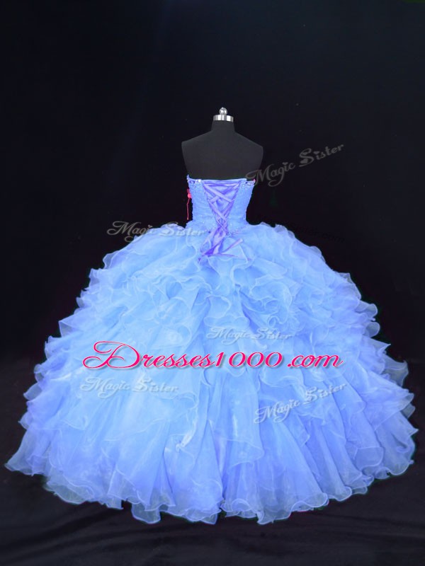 Unique Strapless Sleeveless Lace Up Quinceanera Gown Purple Organza