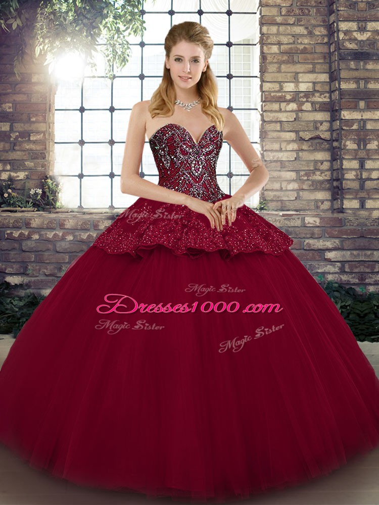 New Arrival Ball Gowns Quinceanera Gowns Burgundy Sweetheart Tulle Sleeveless Floor Length Lace Up