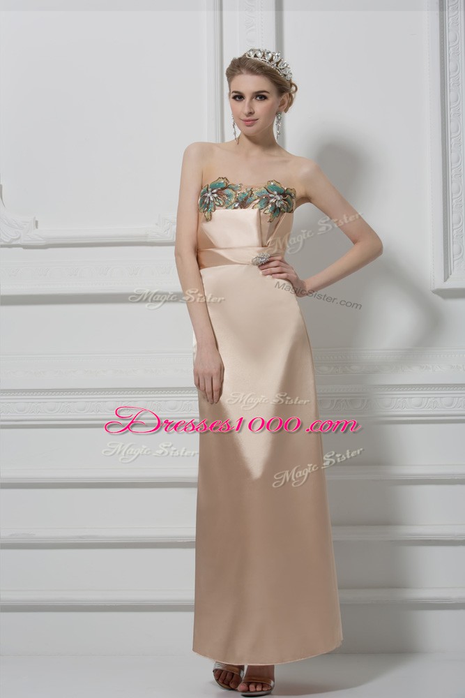 Champagne Column/Sheath Sweetheart Sleeveless Satin Floor Length Lace Up Lace and Appliques Prom Evening Gown
