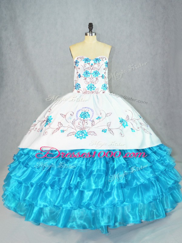 Beautiful Baby Blue Lace Up Sweetheart Embroidery and Ruffled Layers Sweet 16 Quinceanera Dress Organza Sleeveless