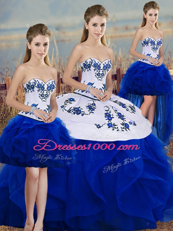Sleeveless Embroidery and Ruffles and Bowknot Lace Up Quinceanera Dress
