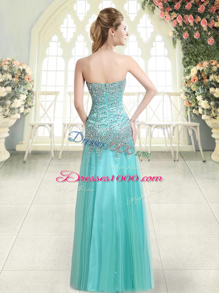 Blue Tulle Zipper Sweetheart Sleeveless Floor Length Evening Dresses Beading