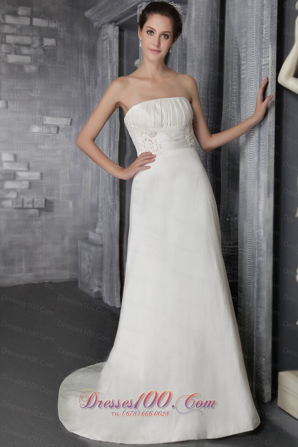Appliques Brush Train Bridal Wedding Gown Strapless Taffeta