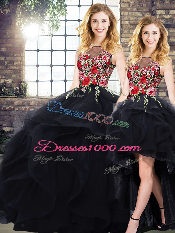 Deluxe Black Sleeveless Beading and Embroidery Floor Length Vestidos de Quinceanera