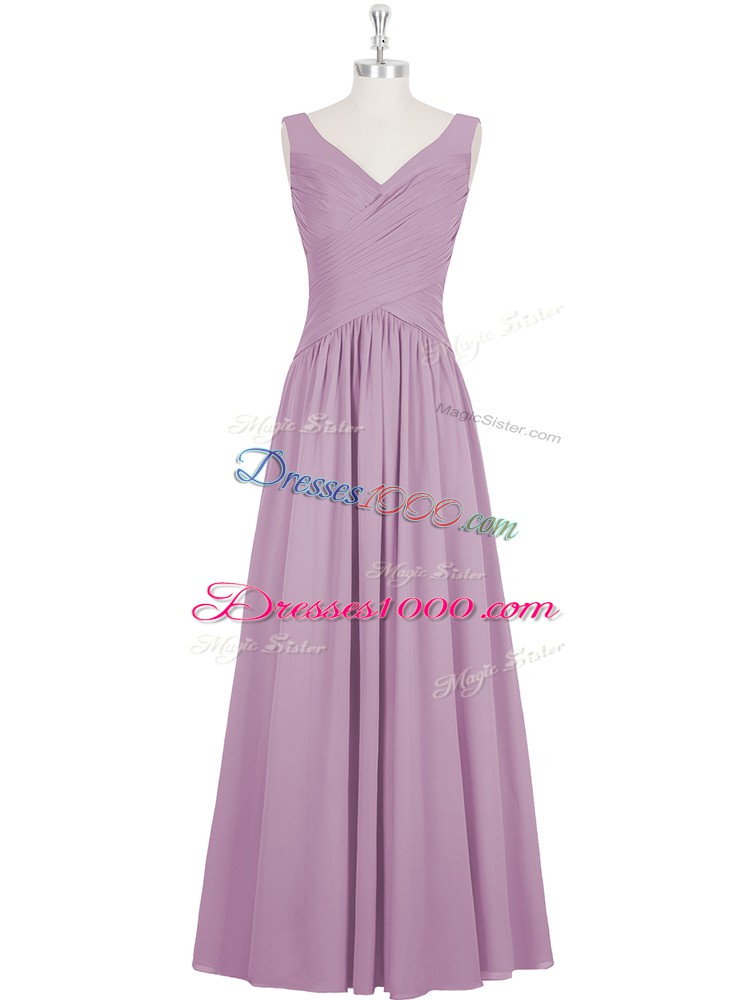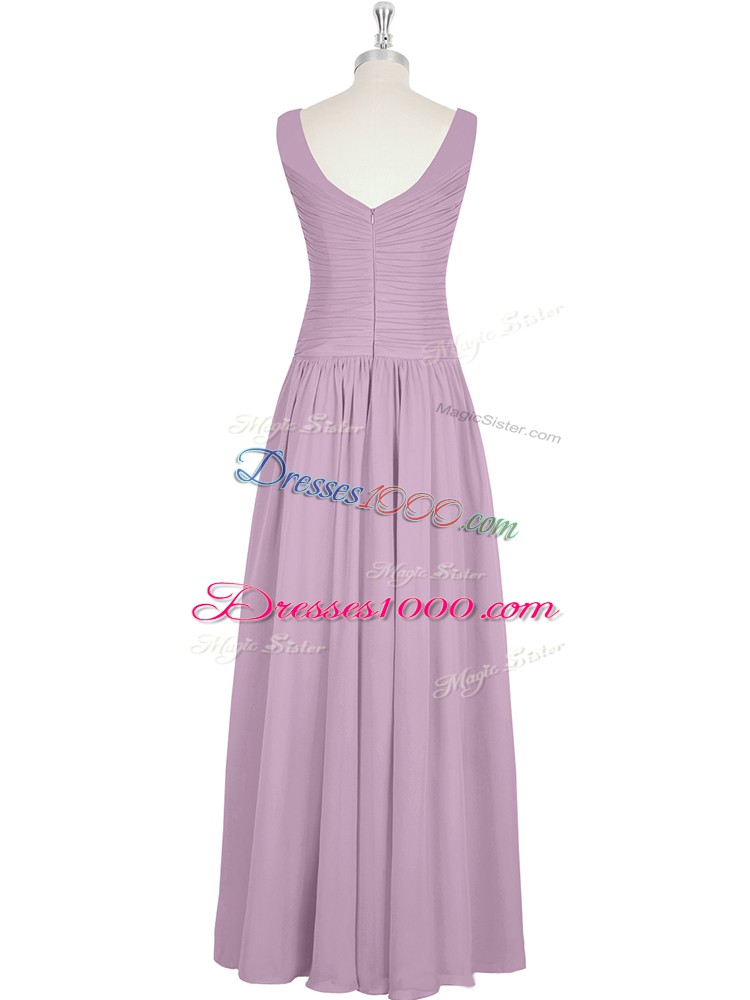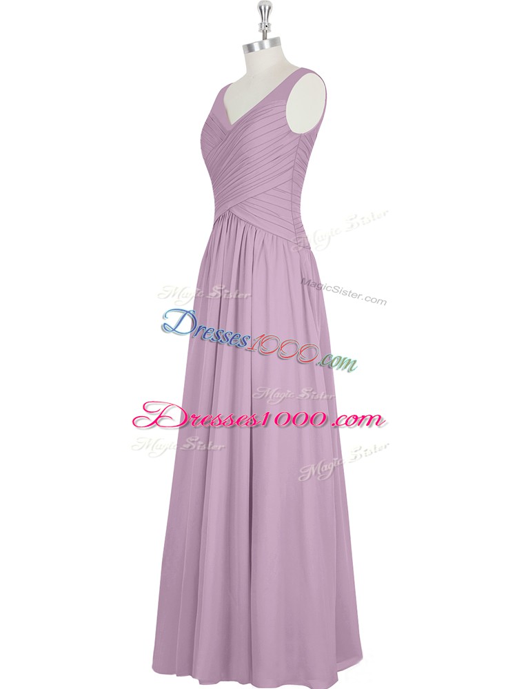 Purple Sleeveless Floor Length Ruching Zipper Evening Party Dresses