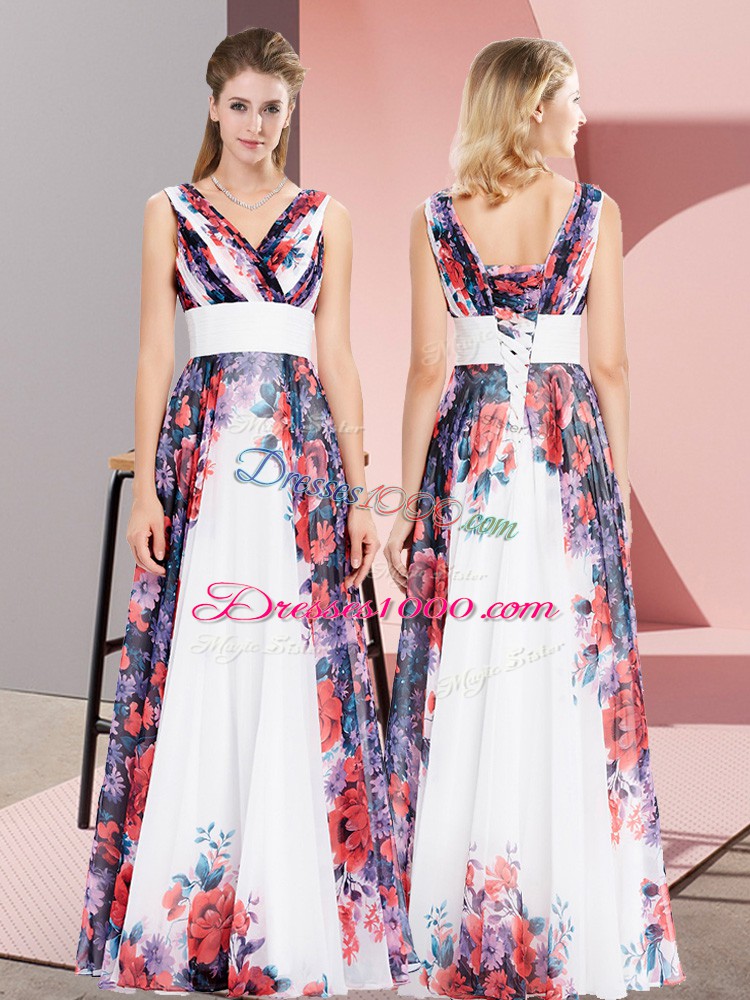 Floor Length White Formal Dresses Chiffon Sleeveless Pattern
