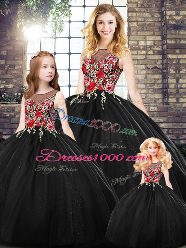 On Sale Black Sweet 16 Dress Military Ball and Sweet 16 and Quinceanera with Embroidery Scoop Sleeveless Zipper