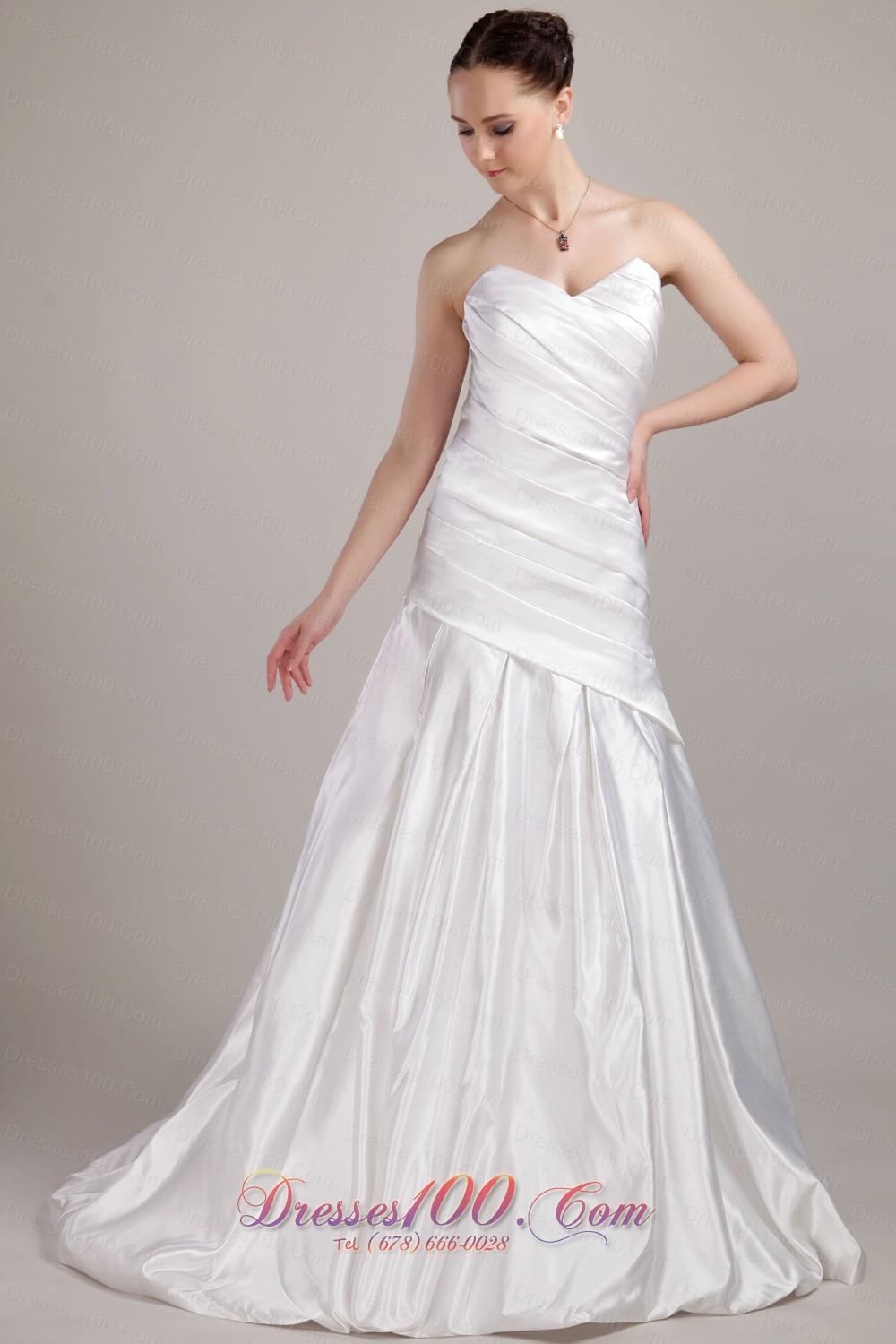 Low Cost Sweetheart A-line Wedding Gown Taffeta Brush Train