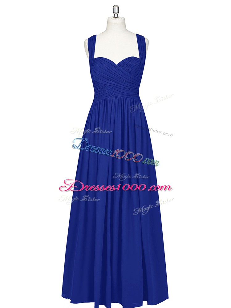 Sweet Royal Blue A-line Ruching Prom Party Dress Zipper Chiffon Sleeveless Floor Length