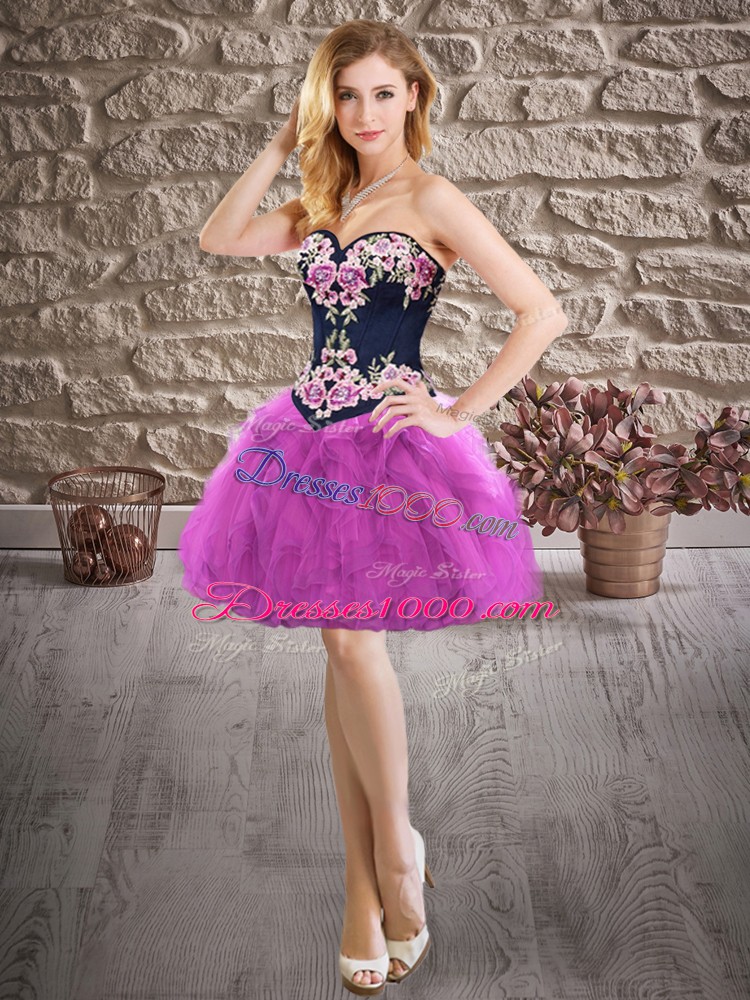 Mini Length Purple Prom Dresses Sweetheart Sleeveless Lace Up