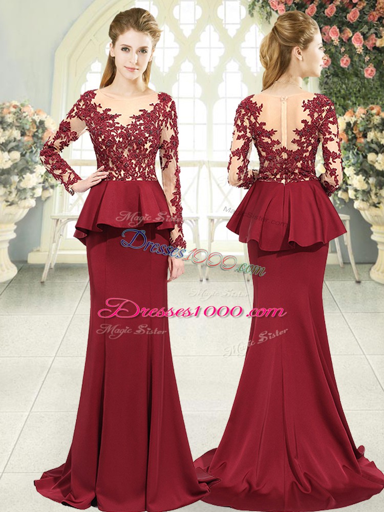 Red Long Sleeves Lace and Appliques Zipper Evening Party Dresses