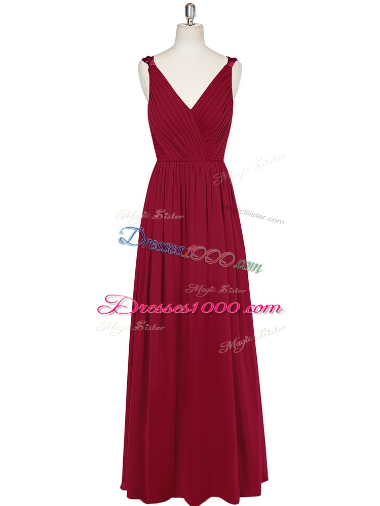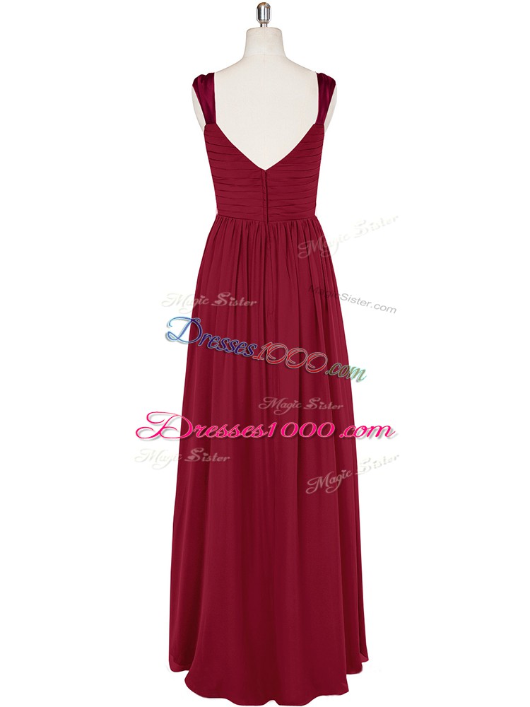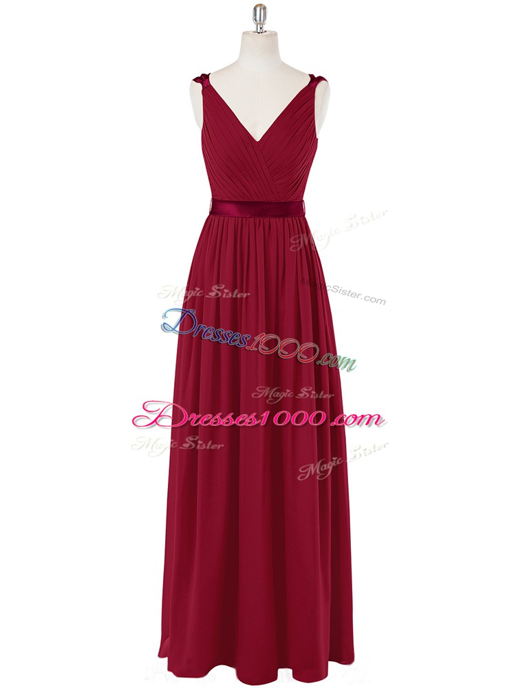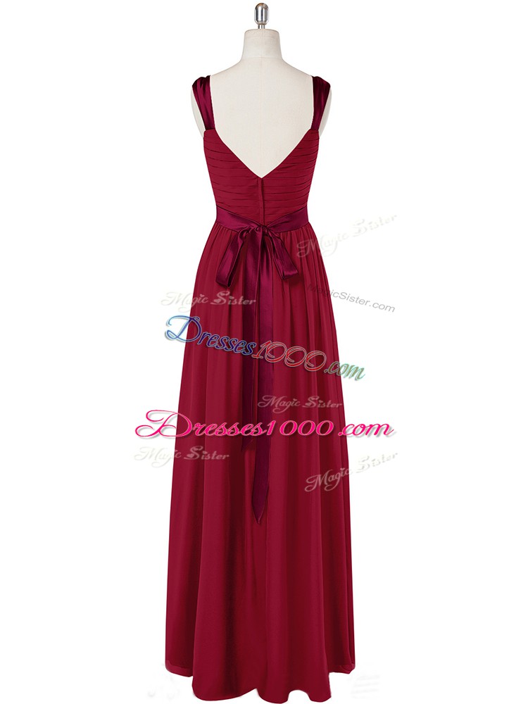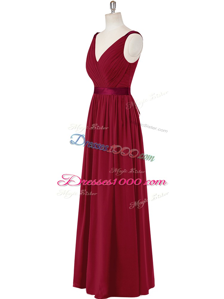 Sexy Wine Red Empire Ruching and Belt Going Out Dresses Zipper Chiffon Sleeveless Floor Length