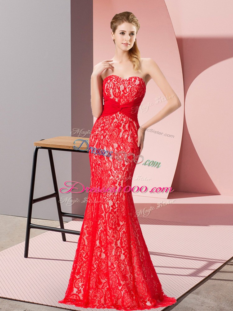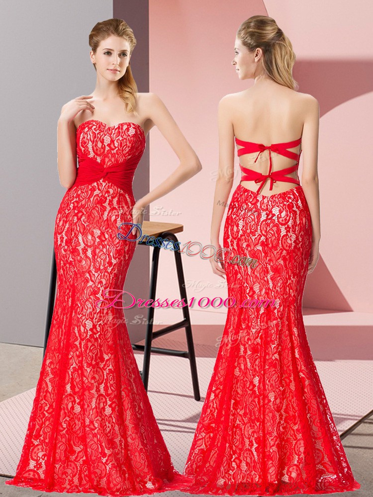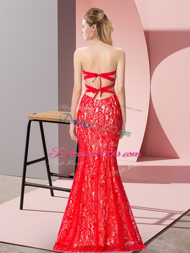 Floor Length Backless Evening Outfits Red for Prom and Party with Beading