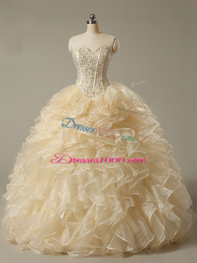 Sleeveless Beading and Ruffles Lace Up Quince Ball Gowns