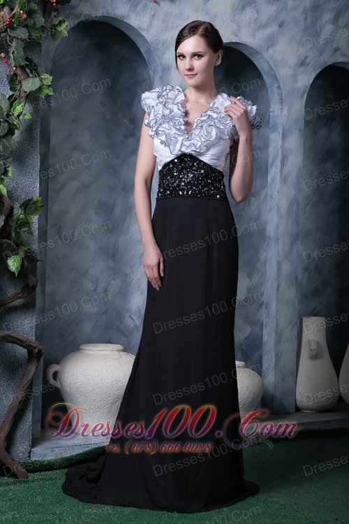 This modest prom dress has a unique style with ruffled neckling and glamour of rhinestones as the waistband. The black skirt features a floor length style and cute sweep train in the back. A hidden zipper in the back showcases your curve elegantly. It is really a good choice for your next formal occassion.