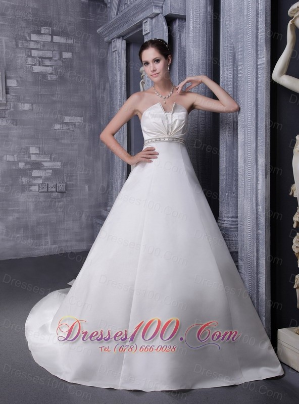 Strapless Satin Bridal Wedding Dress Chapel Train Beading Princess