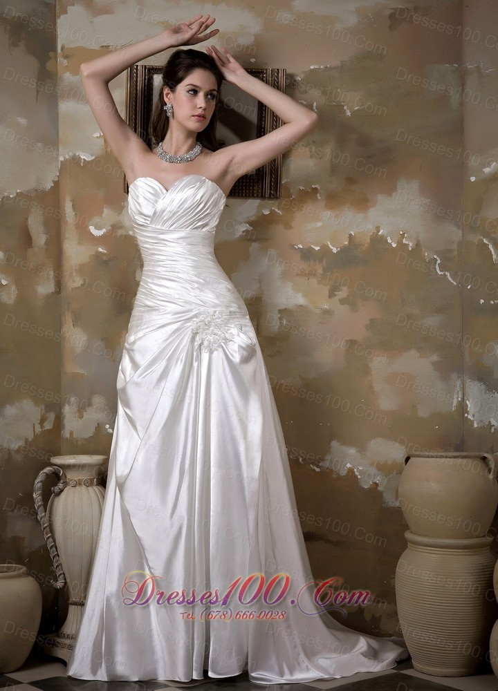 Sweetheart Elastic Wove Satin Court Train Appliques Wedding Gown