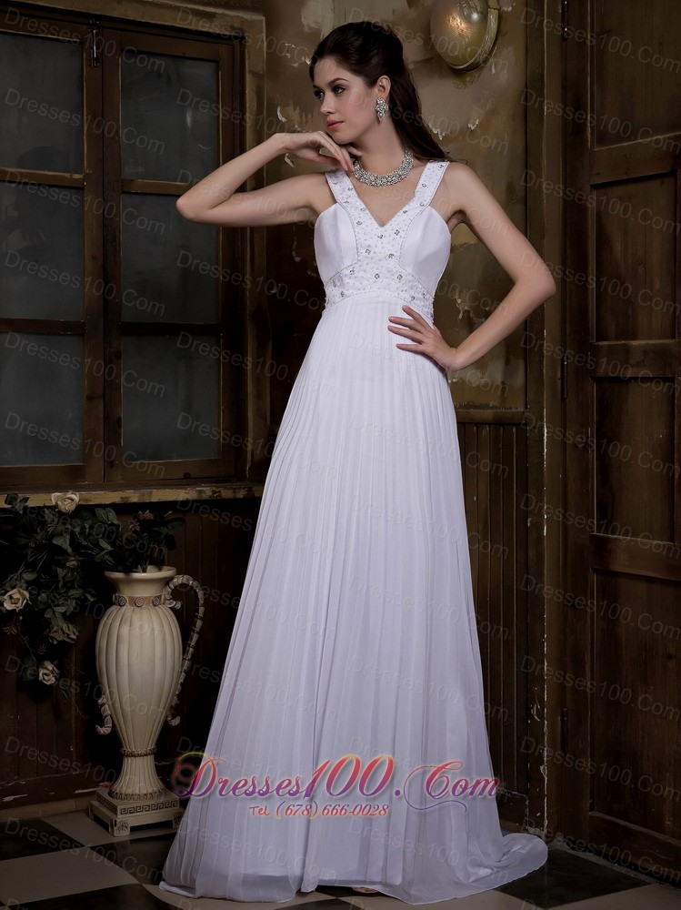Taffeta and Chiffon Pleated Bridal Dress V-neck Watteau Train