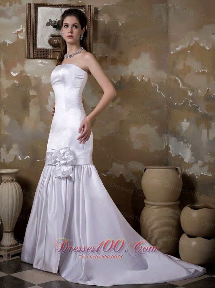 Satin Court Train Mermaid Bridal Wedding Dress Strapless
