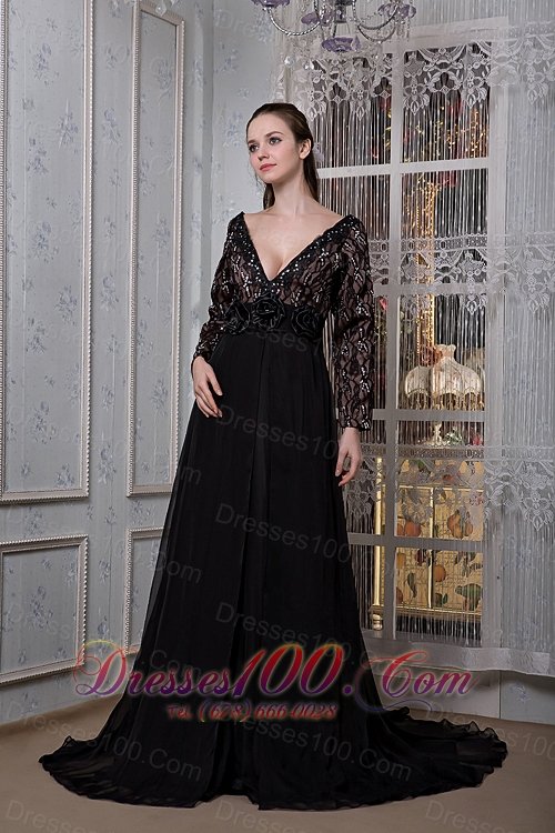 Sleeves V-neck Beading Court Train Mother Of The Bride Dress