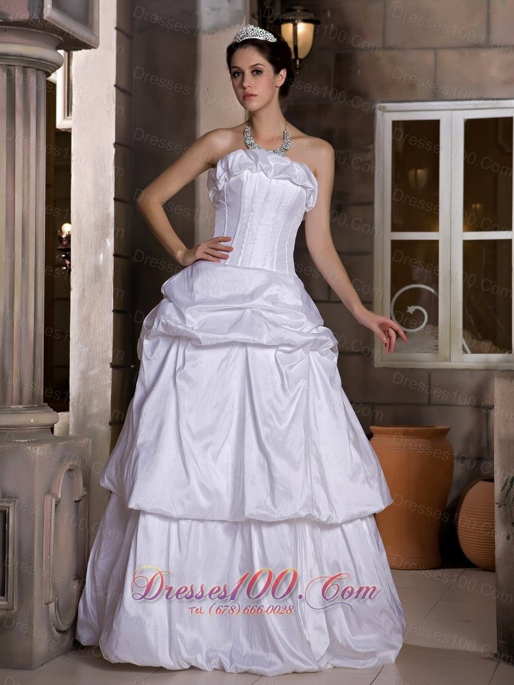 Princess Strapless Bridal Wedding Dress Taffeta Pick-ups