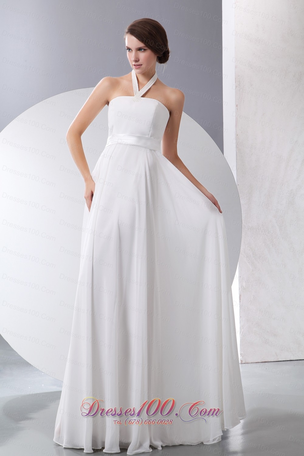 Halter Top Straps Chiffon Wedding Gown Floor-length Empire