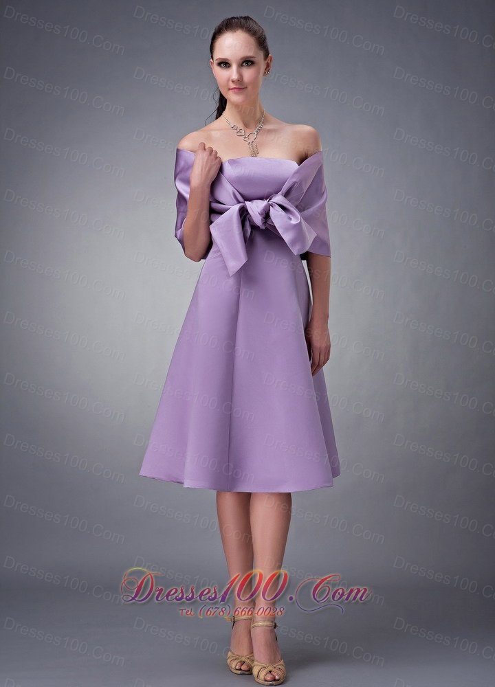 wrap Tied Bow Decorated Bridesmaid Dress Tea-length